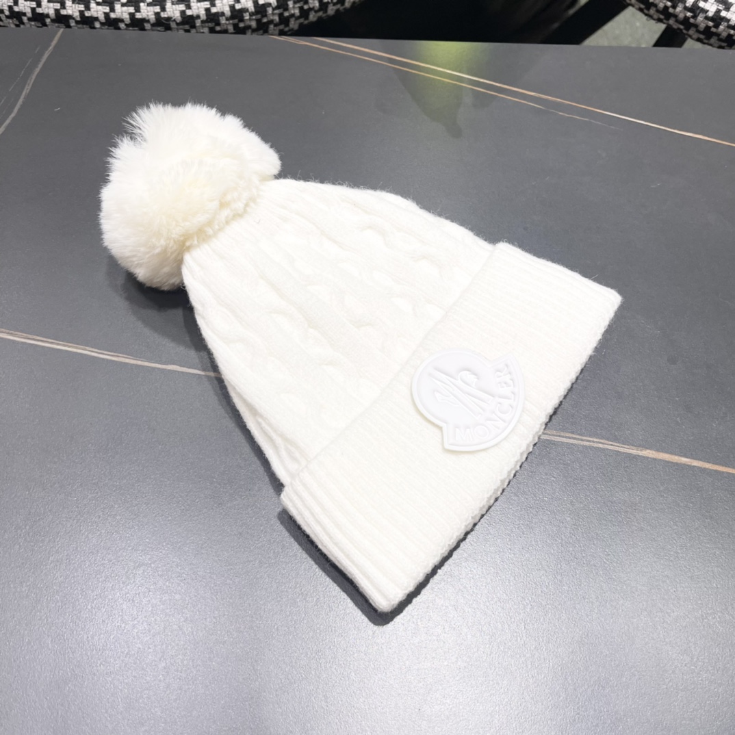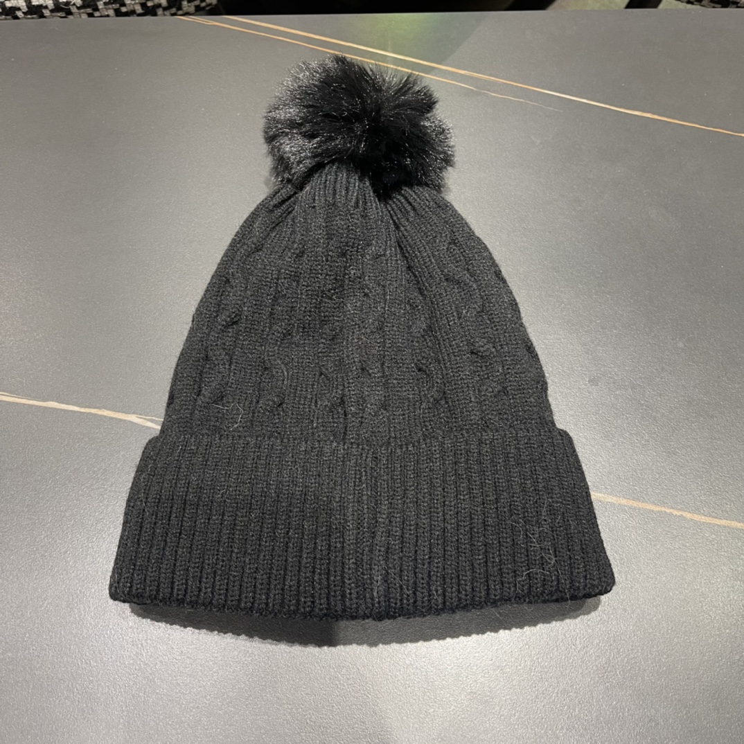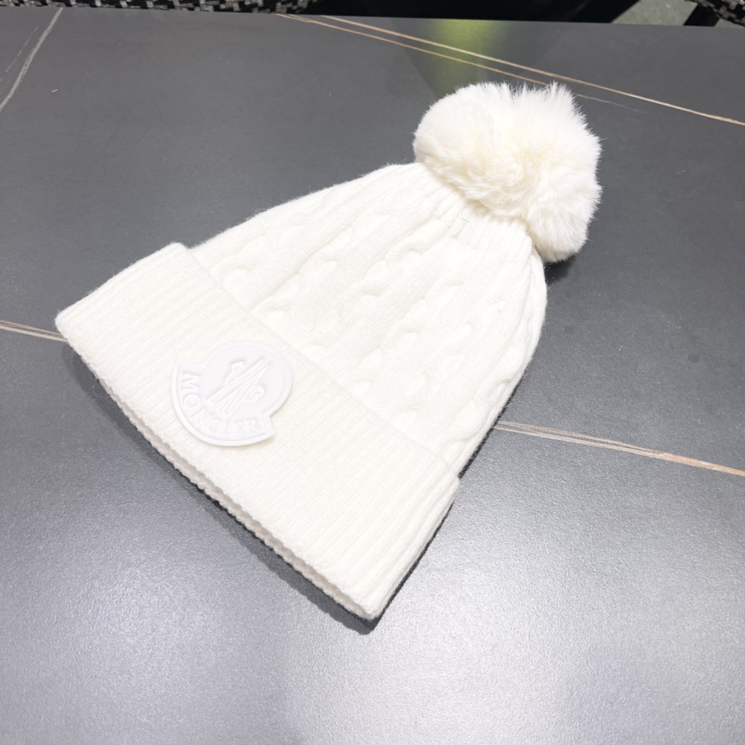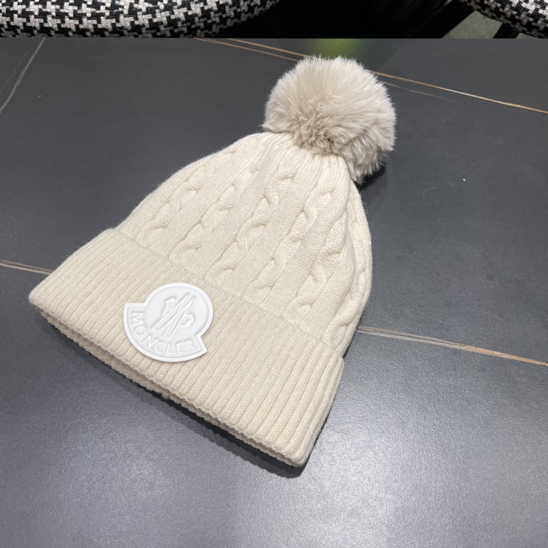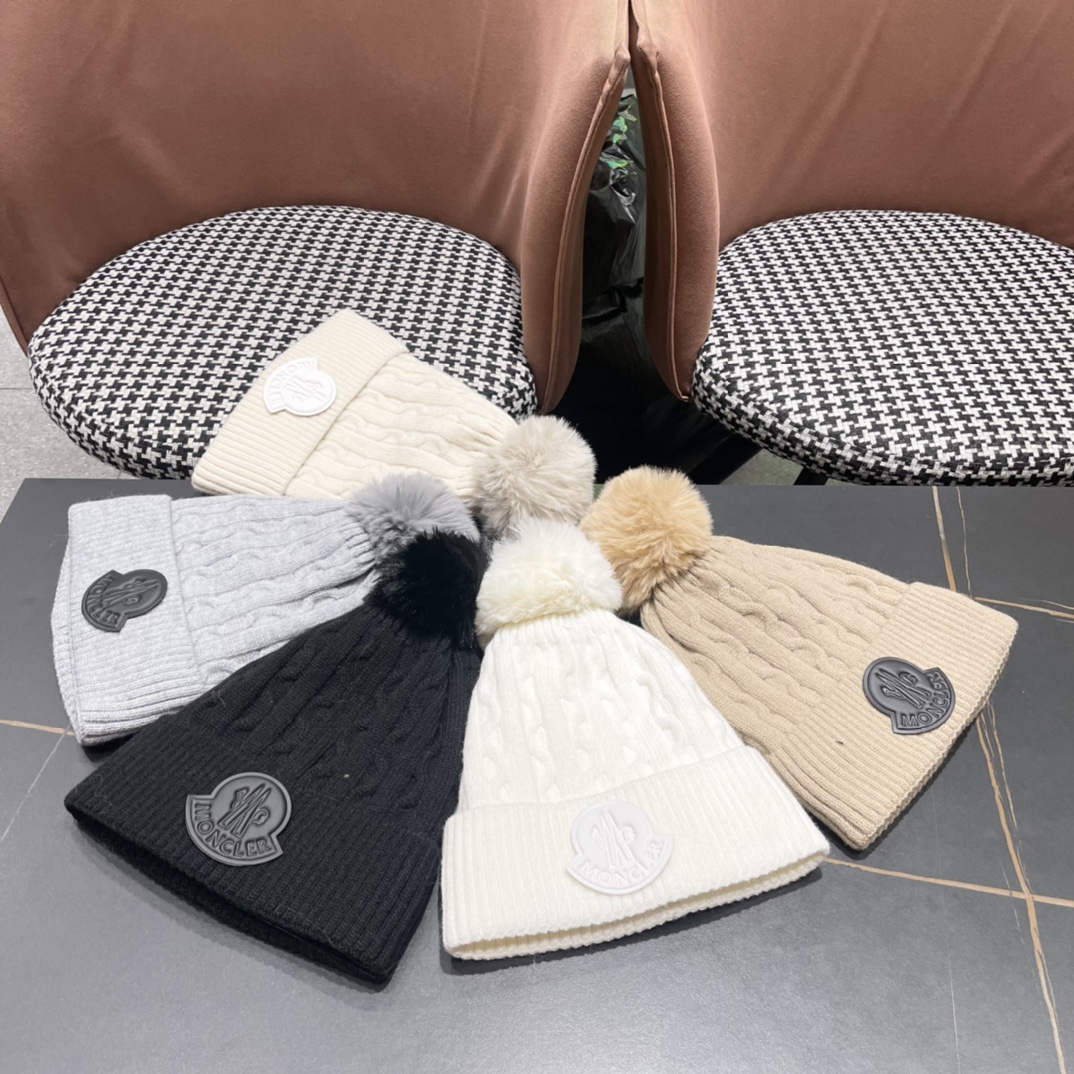 Home>M0ncIer>Hat / beanie / cap>1:1 quality version Twisted knit and fluff ball padded cold beanie 5 colors