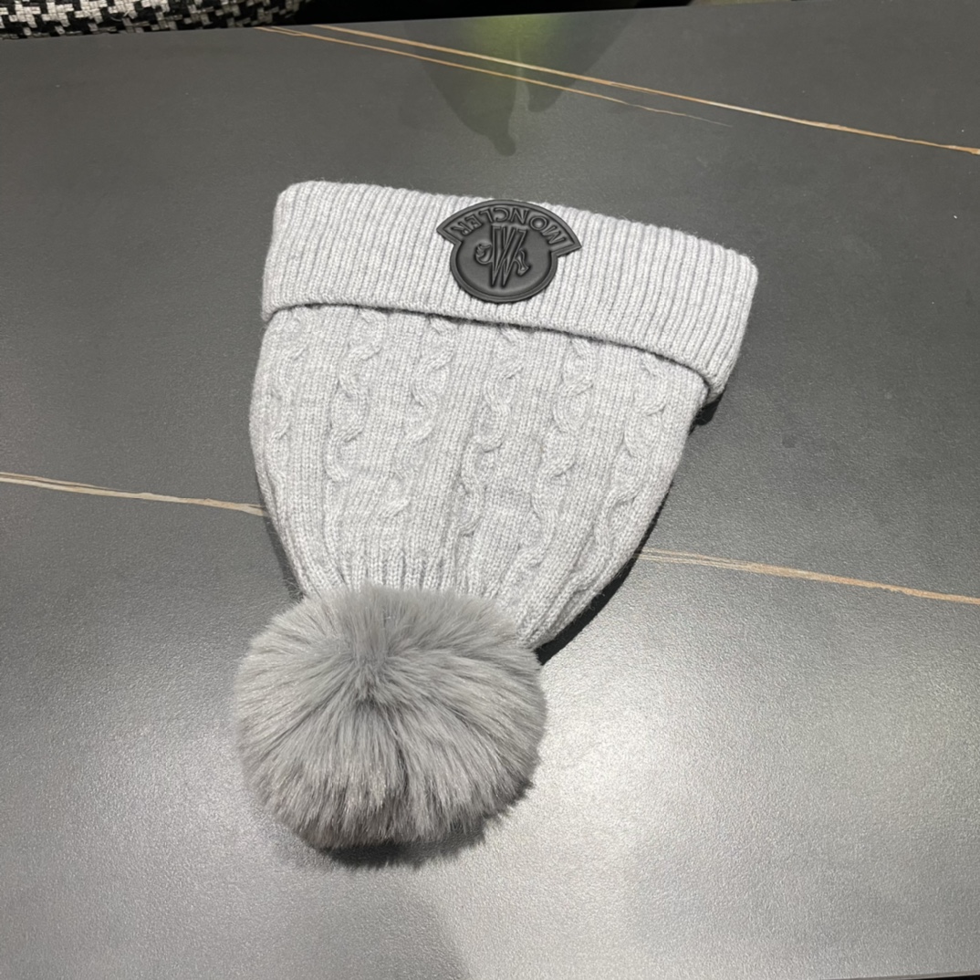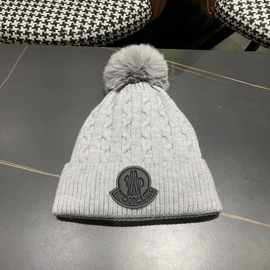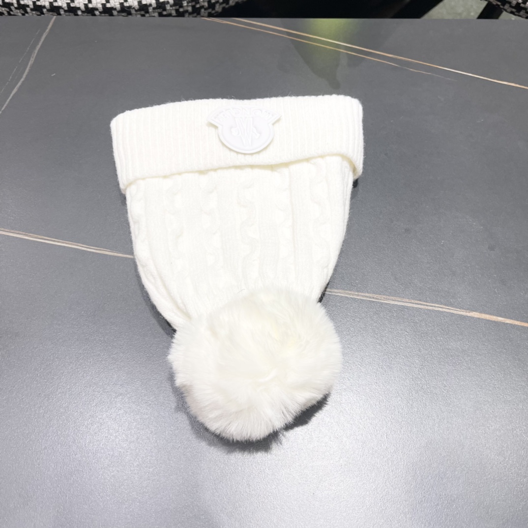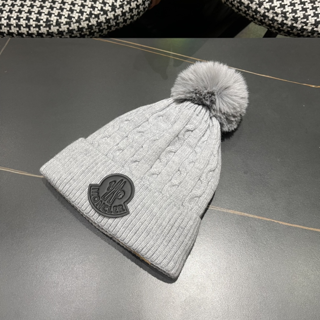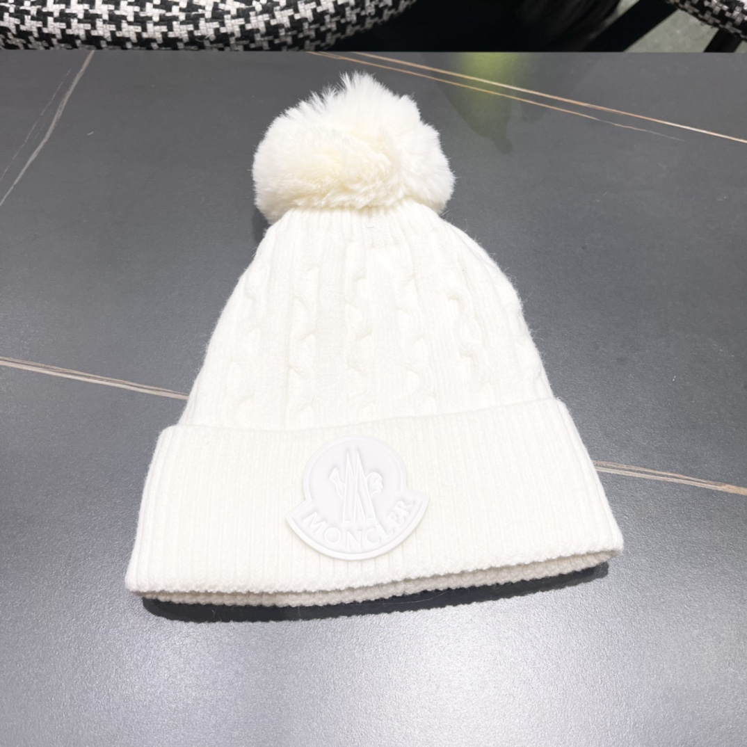 Home>M0ncIer>Hat / beanie / cap>1:1 quality version Twisted knit and fluff ball padded cold beanie 5 colors